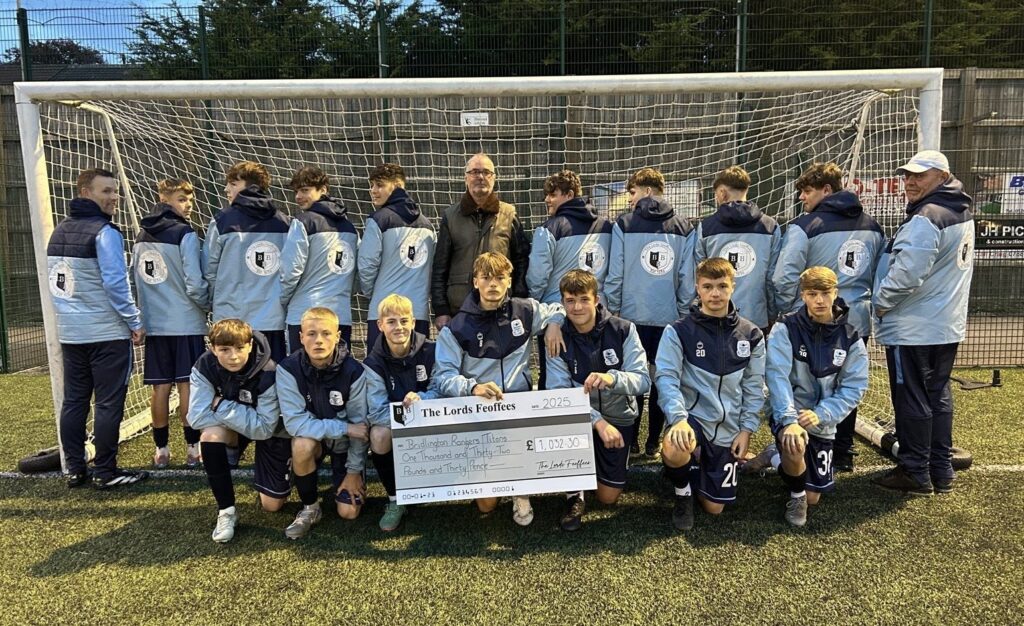 The Lords Feoffees have given funding to the Bridlington Rangers Titans for training kits and jackets for the players and coaches. Lord Feoffee, Chris Thomas, presented a cheque to the team at a recent training session.